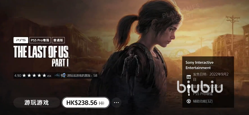 《最后生还者第一部》:PS5版的折扣后价格为238.56港币,同样是新平台史低。这波优惠力度还算不错。光碟应该也在200多元,所以各位是可以选的,但是PS4版74就不是史低了,因此不推荐,如果是PS5主机用户,还是建议选择PS5版本。美末二PS版则来到了231元的价位,但二手光碟仅需160元左右,这个差价稍微多了点。