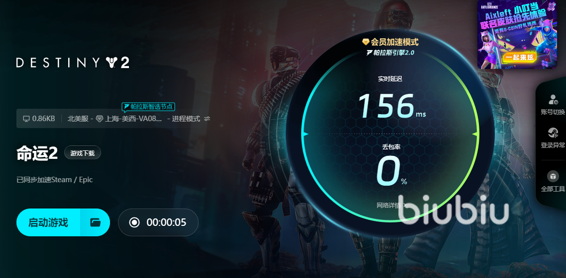 2024年12月03日 19:38 来源:长矛小梦幻命运2是一款拥有宏大叙事和故事线的射击类游戏,近期它已经结束了上一个赛季,准备新赛季的开启了,很多玩家们都想趁这段时间入坑,抓住机会获得奖励。但却又听说命运2加速器的选择会在很大程度上影响玩家们所获得的游戏体验,所以希望小编可以出一期有关于这款游戏加速工具该如何选择的攻略文章。在经过小编的亲身体验后,最终选择为玩家们推荐的是biubiu加速器,相信各位小伙伴们也多多少少对这款软件有所了解。在看完今天这篇文章后,相信玩家们一定都能够找到适合自己的加速软件。