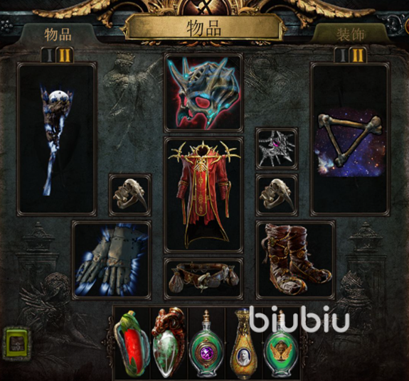 药水就采用常规带法,用血瓶,格挡水以及混沌抗的就好了,然后万神优先选择带有物理减伤的,其他的随便选,这样在战斗的时候,续航有了保证。