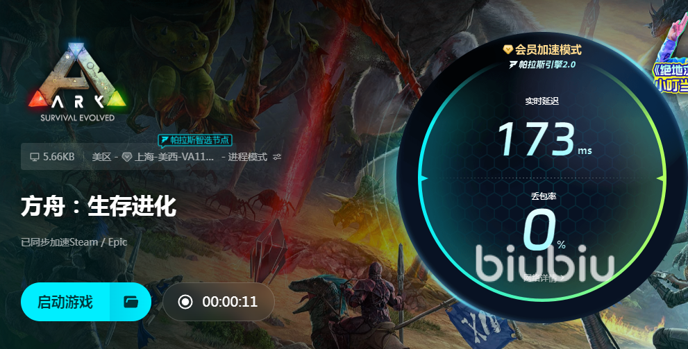 而方舟生存进化又不是只要单纯生存下来就可以了,玩家还有机会驯服恐龙并培养它们,然后带着自己的恐龙和其他玩家开展PVP对抗,只要打败对方就能掠夺对方的资源。所以大家一定要保证自己网络良好,千万不要在战斗的时候网络掉链子。不过只要用了biubiu就不用担心网速跟不上了,它一键启动就带来丝滑的网速,让玩家赢在起跑线上。