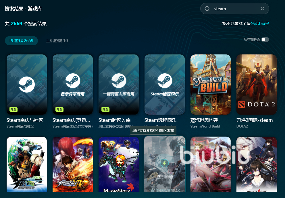 就拿加速海外游戏来说,biubiu支持的海外游戏成千上万,这些加速资源都是正规授权的,用户可以放心点击使用。它的节点分布在世界各地,还拥有专业高速游戏专线,加速海外游戏的时候别提有多带劲了,只是一眨眼的功夫就能把游戏和服务器连接起来,而且不论是国际服还是韩服、日服都能加速,要是找不到资源的话可以告诉biu仔帮忙一起找哦。