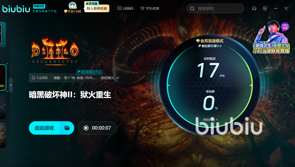 暗黑2重制版如今只有海外版本,所以暂时没有上线国服。唯有借助biubiu之后,方能突破暗黑牢笼,让你有资格挑战邪恶的邪神。新用户的话可领取24小时的免费加速,另外新老用户输入【biubiu不卡顿】,额外获得三天免费加速。要是刷暗黑小怪时太卡的话,自己也会陷入险境,甚至无法发育。只要用上加速器后,就能告别卡顿,每次都能速刷一些基础关卡,让你真正有能力面对接下来的险境。