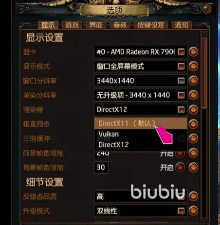 然后往下拉,找到反锯齿品质,调整到高,接着清晰度进行调整,选到自己肉眼看着最舒服的百分比,然后升级模式选择双线性就会很清楚了。