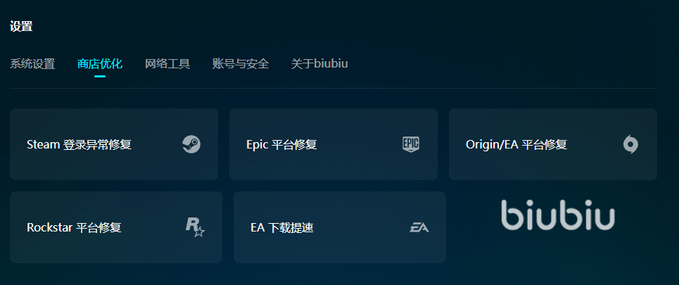 biubiu当中的商店优化功能也是大家经常用到的,商店优化可以修复各大游戏平台登录报错和加速异常的情况。要是大家对biubiu有什么好的建议也可以提出来,biubiu虚心接受大家的意见,会根据用户反馈来不断提升自己。