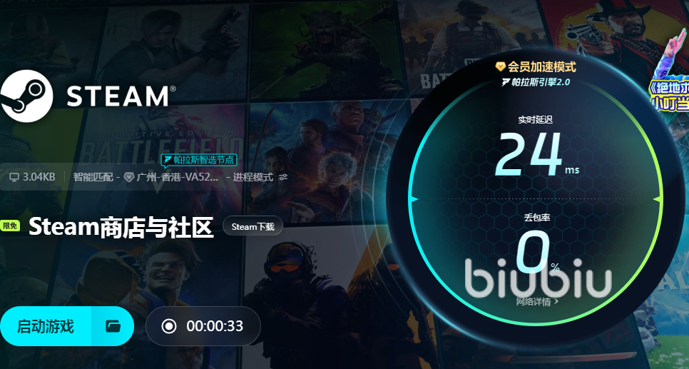 在实际玩游戏的时候,玩家们还会遇到很多突发状况,比如敌人突然跳脸攻击,这时候玩家不仅要快速反应拉开和敌人的距离,还要想要接下来怎么反击。这时候网速也不能拉胯,如果延迟太高了很有可能因为操作卡顿导致移动失败,直接被敌人打死了。大家可以给biubiu一个机会,它加速的网络非常稳定,在良好网速的前提下大家才能快乐玩游戏。