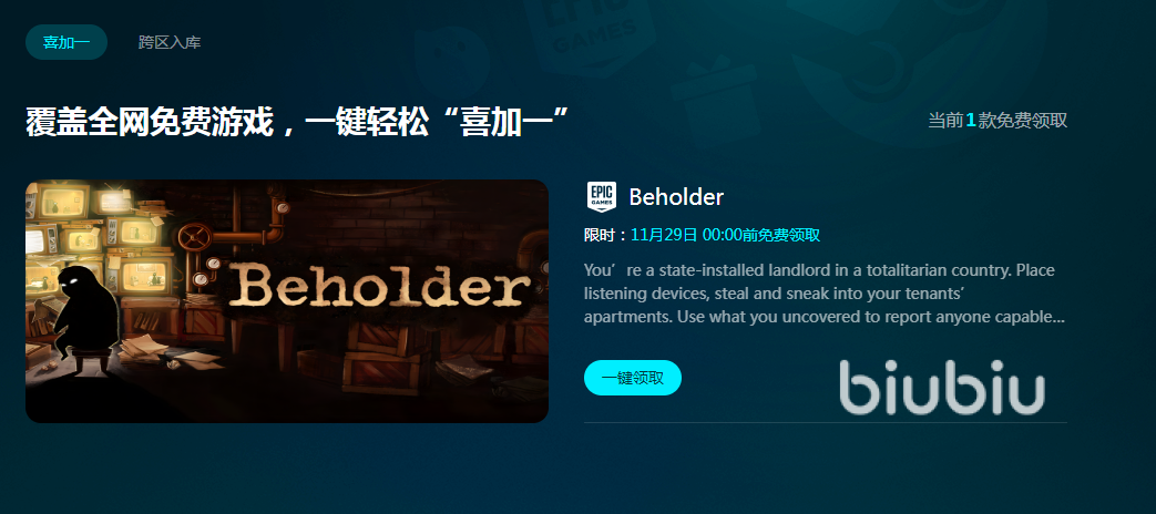 小编偷偷告诉大家本期biubiu的喜加一依然准备了好玩的游戏,这些游戏是免费领取的哦,只要按要求操作就能领取,绝对没有任何套路,人人都能享受都能参加。大家领取以后就算暂时不玩也没关系,等到有时间了再去体验新游。