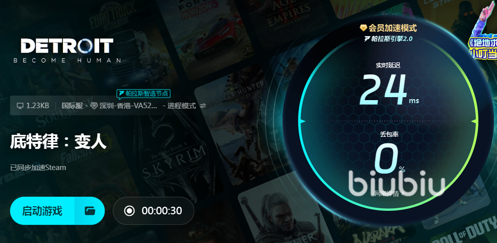 玩惯了常规3A游戏的小伙伴刚接触底特律变人的时候感觉不太适应,因为它“玩”的部分实在是太少了,更多的时候玩家好像是在看电影跟读对话。虽然游戏欠缺了一些互动性,但不可否认它打破常规开辟一条新的玩法道路。当大家专心欣赏剧情的时候,一旦遇到掉帧是很扫兴的。现在有了biubiu,这些都不是问题了,它能加速非常多游戏,效果又好性能又稳定,在biubiu的作用下用户可以沉浸式观看剧情故事,绝对没有延迟来打扰大家。