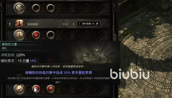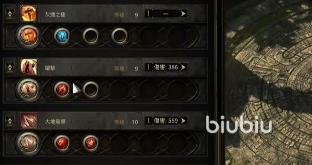 前期我们可以选择翻腾重击以及碎骨的组合来清理小怪,翻腾重击选择压倒性力量,能让我们被辅助的技能造成50%的额外眩晕值,然后配合拳霸技能,辅助的技能可以得到先祖强化,每6秒触发一次,这样我们的攻击伤害就可以持续性的得到加强,上了状态之后,碎骨几下就清理掉小怪了。