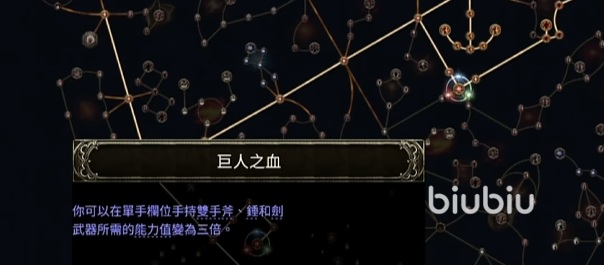 在天赋树当中,点巨人之血之后,我们需要的力量值会增加3倍,做装备多找力量的就行了,而且该技能点周围还有很多优秀的护盾以及防御技能节点,点起来之后生存属性还是很好的。