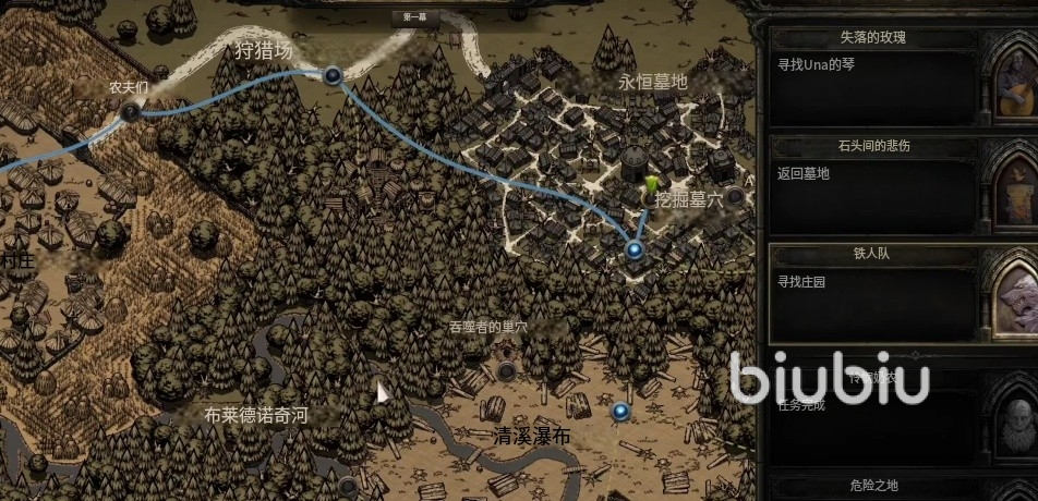 都搜过一遍之后,在回到初始的una那里交谈,得知这个地方的由来,然后我们完成了初始地图的探索,下一步去需要去寻找铁炉村,找到失落的卢特了,要是把石碑都调查好了,我们还会接取到一个调查墓穴来寻找拉克兰家族的任务。