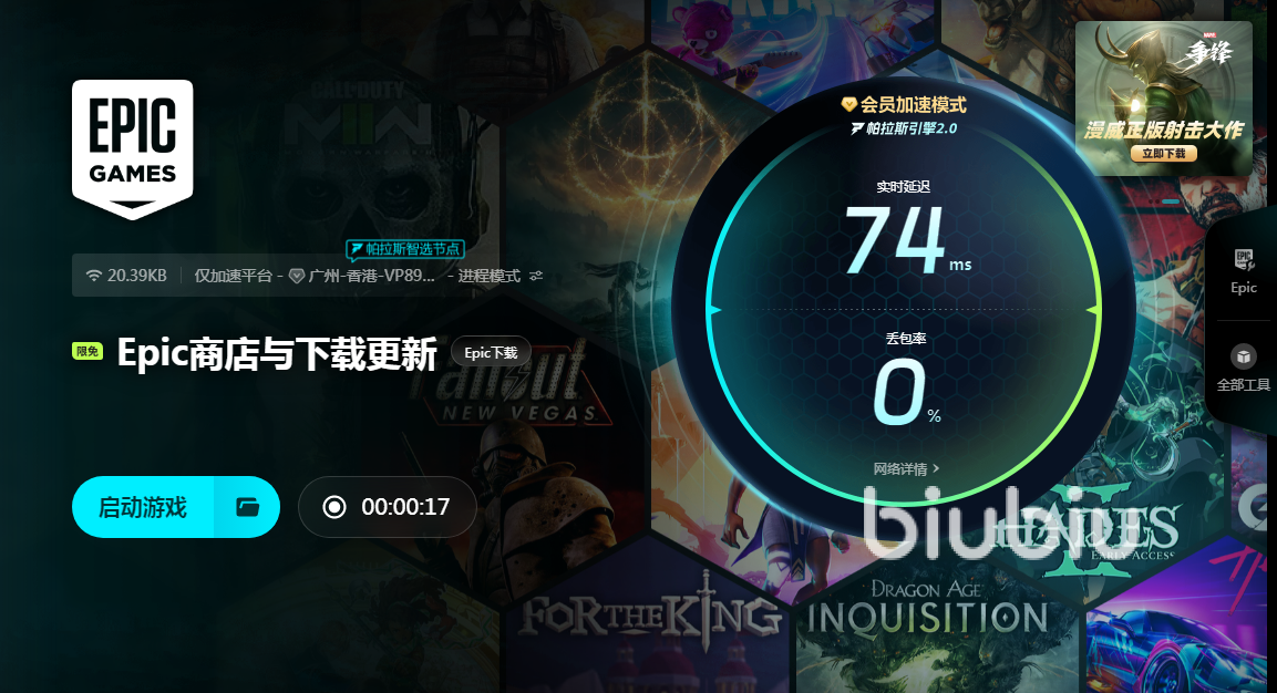 如果在日常运行时,突然出现某款游戏启动不了的问题,那么通过三种途径,就能尝试解决。第1种操作就是清理一下缓存,很多时候缓存过多也会影响正常使用,清理一下后,如果感觉没有效果,那么就查看一下游戏安装路径文件是否损坏,也可以直接卸载掉重新安装一次,这样很多问题也能得到解决。最后就是今天小编要重点向大家推荐的,那就是利用其网络优化工具,biubiu加速器就是非常合适的软件。因为现在epic在biubiu限时免费名单之内,出现在这个名单中就意味着,现在即使不充值成为会员,普通用户也能够直接免费进行优化,同名单中还有很多其他游戏,登录biubiu后查看就能直接看到。那么对于一些没有在此名单之内的游戏或平台,是否也能免费加速试用,答案当然是肯定的。