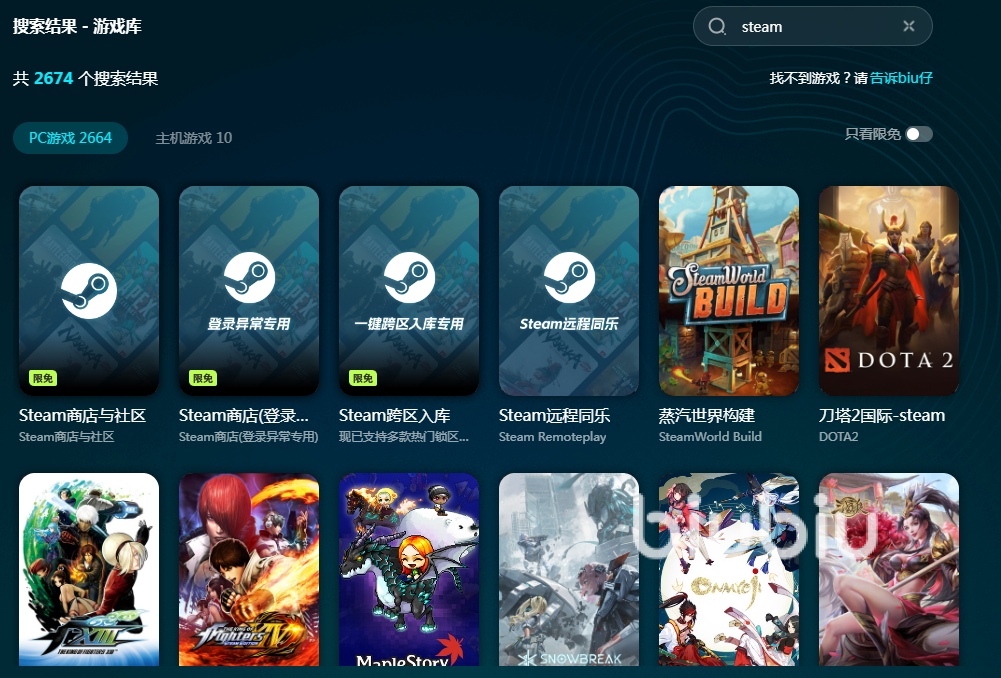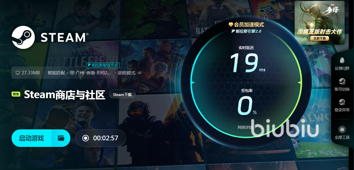 玩steam怎么少得了可靠的biubiu软件呢, 它不光是能顺利把游戏跨区入库,还可以加速平台、商店,并直接加速到游戏上面,下载速度也大大提升,大家玩steam如鱼得水,实在是自在得不得了。现在正好有新用户免费加速24小时的体验机会,赶紧试一试效果。