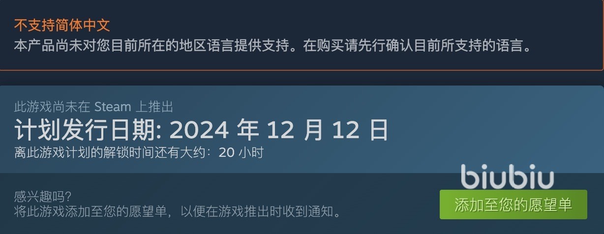 它于2024年12月12日正式上线,大家都已经迫不及待了!现在就可以去Steam把它加入心愿单,不过当前尚未提供中文支持。