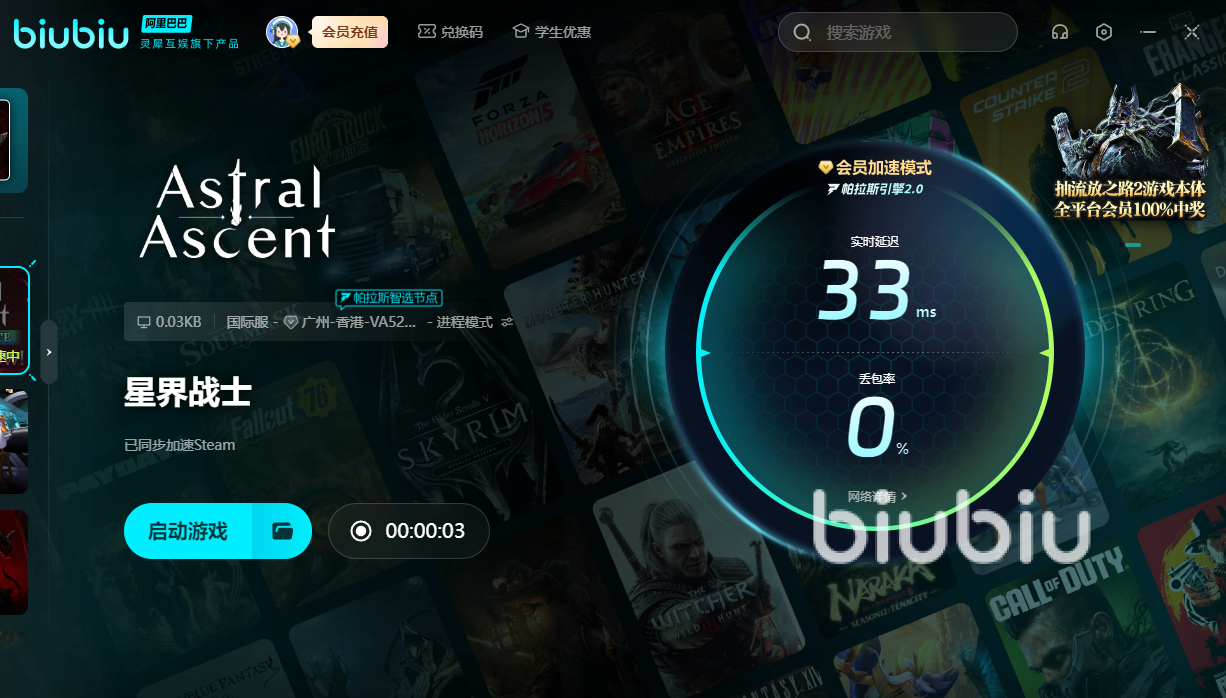 若是运行星界战士途中网速不稳定,有可能就会在开头的地方闪退,更别谈后面的冒险了。唯有用上biubiu之后,网速才愈加稳定,让我们有勇气踏出第一步并开启星界之旅。新用户的话可领取24小时的免费加速,另外新老用户键入【biubiu不卡顿】,便可额外获得三天免费加速。如果打斗途中延迟太高,自己就很容易被对方解决,并无法打中对方的要害。使用了加速器后,才能让你武艺变得高强,提升通关概率。