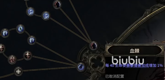 接着再去点血棘,当然也是有原因的,我们每40点生命都可以转换成为1%的暴击伤害,越往后血量堆得越多,带来的暴击率就越高了。