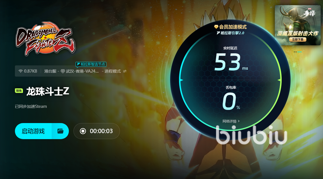 相信很多玩家在体验过这款游戏后,对这个称号绝对会非常认同,在众多龙珠系列游戏中,龙珠斗士Z无论是在剧情人物还原程度以及各个玩法模式方面都非常出色。例如想要体验剧情,就去参加故事模式,感受精彩小说原著,如果想要进行格斗,就去街机模式中进行对战。还有通过网络连接。才能进行的排位赛等。拥有丰富的多人联机对战,这对于想要展现自身实力的玩家来说,绝对是一款不可缺少的游戏。很多玩家表示游戏运行过程中容易出现卡顿,甚至直接被卡死,其实大多数都是在联机时候才会明显。解决方法无需去大动干戈,只需要动动手指,下载一个biubiu去打开游戏客户端就能轻松解决了。值得一提的是,现在新注册biubiu号,立刻就得24小时加速时间,介绍再多也不如亲身体验一下更为实在。