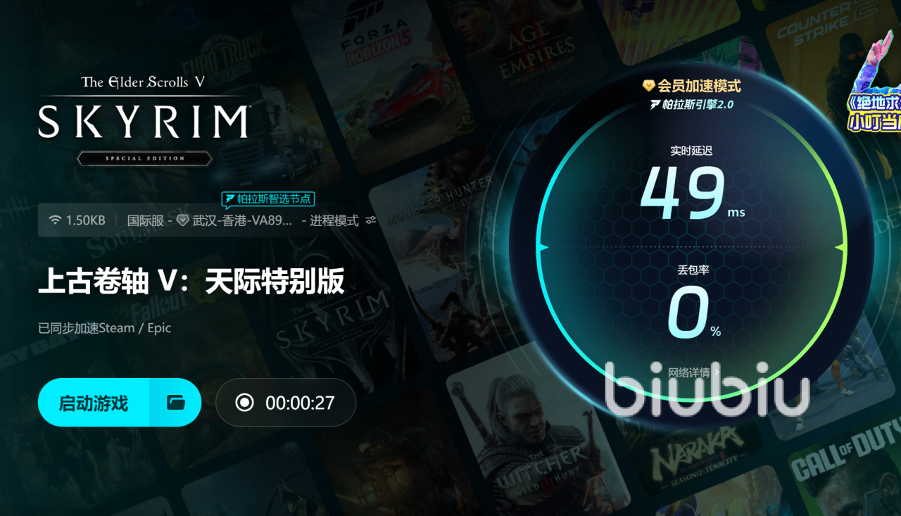 以上就是上古卷轴5重制版闪退怎么解决的全部内容了,网速慢打游戏一卡一卡的就用认准biubiu!除了重制版,biubiu还支持加速上古卷轴5、上古卷轴ol等,大家可以按自己需要选择加速服务。