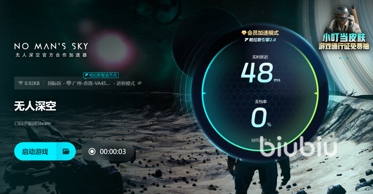 目前这就是小编提供的无人深空卡顿解决方法是什么的全部信息,在探索广袤宇宙的同时,玩家能看见很多漂亮的景物,可以进行打卡拍照,也可以选择自由自在地游览,但要是出现卡顿问题的话,会错失很多的美景,不妨试试biubiu加速器哦!