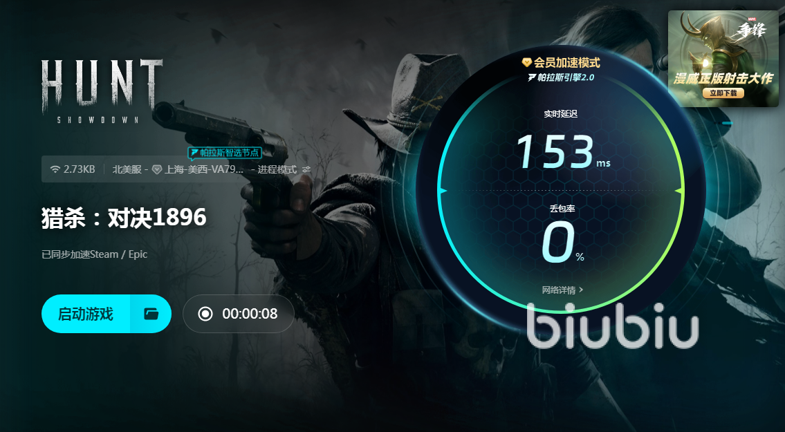 这是一个充满了灵异巫术的诡异西部世界,在设计的时候就将魔幻和现实气布料处很好结合起来,玩家所扮演的驱鬼牛仔,经常要面对强大灵异生物。游戏在上手难度方面确实有一些特点,简单来说就是比较难上手,因为很多都是新概念,同时战斗过程难度也较高,采用的是撤退玩法,这一点也和大多数剧情游戏有所区别。游戏内规则也非常残酷,很多新手玩家难以生存下去,但是这些玩法方面的困难都可以克服,但经常出现延迟高,是令人无法忍受。使用biubiu之后能够显著降低延迟,具体操作流程以及性能,小编接下来会详细介绍。现在玩家最需要做的两点就是,新注册biubiu号,能得到24小时加速时间,以及使用兑换码【biubiu不卡顿】,去兑换三天加速时间,这两项一定要牢记,而且千万不要错过。