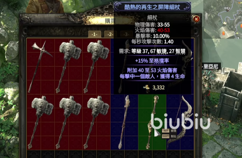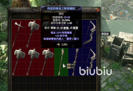 此时我们可以看看自己玩的职业需要走什么路线,比如说玩法师,火伤害比较猛,那我们就可以选择带增加火伤害词条的细杖武器,要是带的加命中加物理伤害什么的,当然输出效果就不太好了。