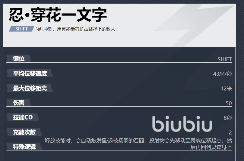 shift键是位移作用,用忍·穿花一文字是可以往前冲刺的,同时能够用灵能拳刃来攻击路径上的敌人的。