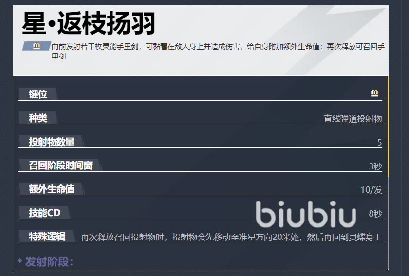 鼠标右键释放的星·返枝扬羽,作用是可以发射手中的灵能剑,吸附到敌人身上的时候,不仅是造成伤害,还可以拥有吸血效果,增加自身的续航。