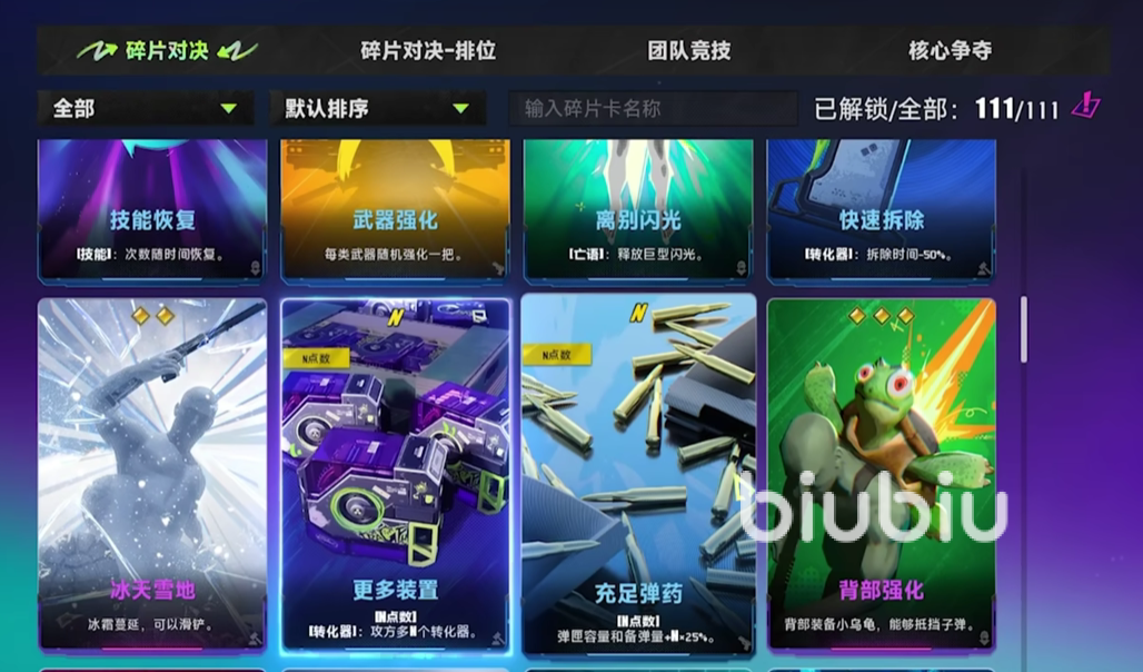 这些特技也是有等级的,比如蓝色的更多装置是可以让我们攻击多个转化器,紫色的也很强,冰天雪地是可以让冰雪蔓延的时候,我们获得滑铲的能力,背部强化可以让我们在背上装一个小乌龟,抵挡子弹带来的伤害。