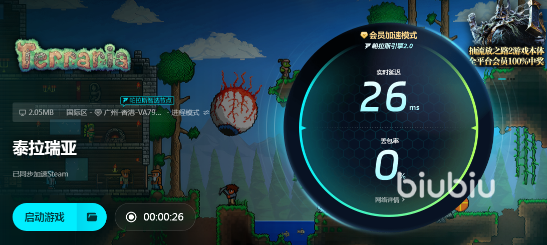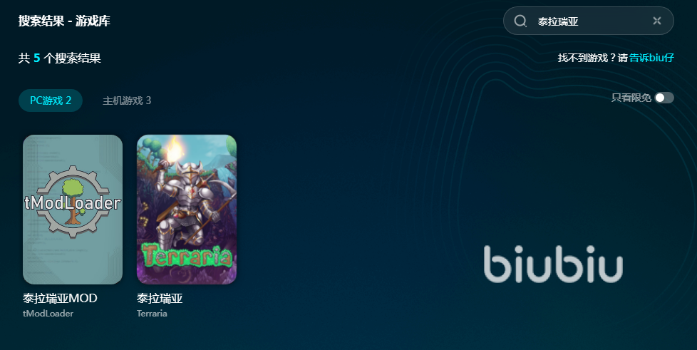 用biubiu来玩泰拉瑞亚游戏合适不过了,它一共有5款关于泰拉瑞亚的加速资源,包含了电脑游戏和主机游戏,并且开放主机游戏的限免加速。小伙伴们也能通过注册新用户来获得24小时免费体验,这样就能加速全平台的资源了。