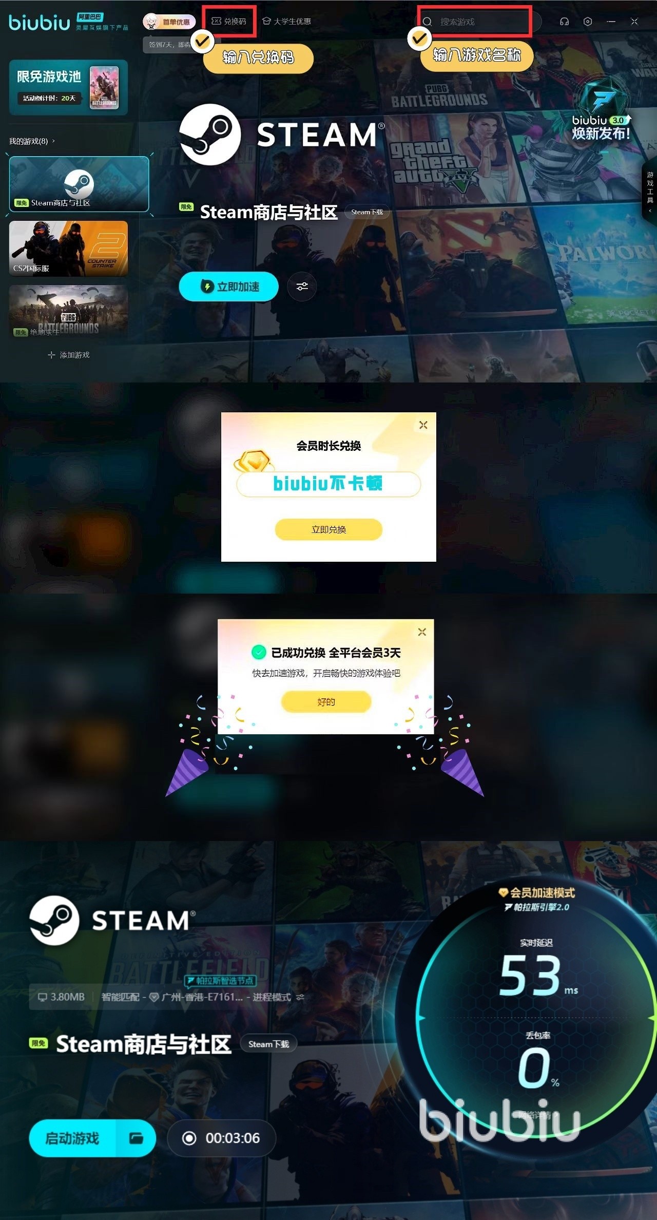 而不少玩家表示自己参与平台活动期间会出现连接掉线的情况,那么不妨相信一下biubiu,它是很热门的存在。而且目前新用户还是能够直接免费使用24小时的,让大家可以提前逛逛平台,并且下载心仪的游戏。另外,如果大家觉得这个时间不是那么充足,还可以借助【biubiu不卡顿】继续体验,能够额外得到72小时使用机会,帮助玩家们免费的加速不同的游戏,这么算下来,新人直接得到了96小时的免费体验机会,想想就非常给力。