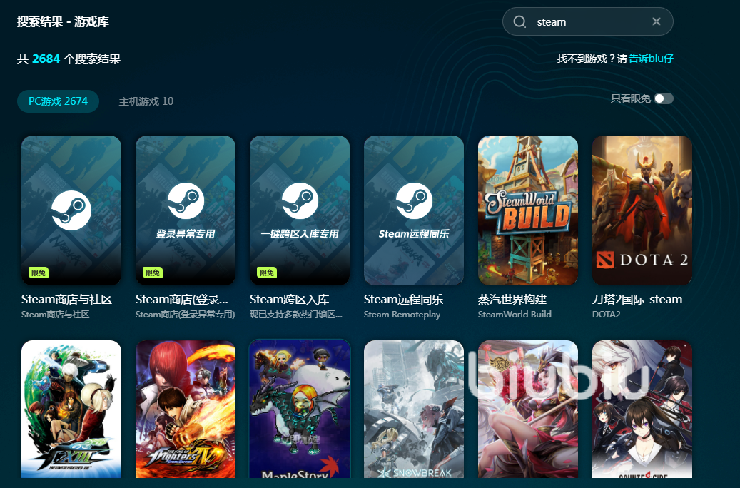 它还能直接用来加速游戏,千万别小看biubiu游戏库,里面拥有的是全球游戏的资源,游戏种类齐全,平台还对多款国服游戏开放限免加速,更是准备了齐全的海外服国际服等待着玩家光临,只要一键就能启动软件,从此享受快速又稳定的网速。