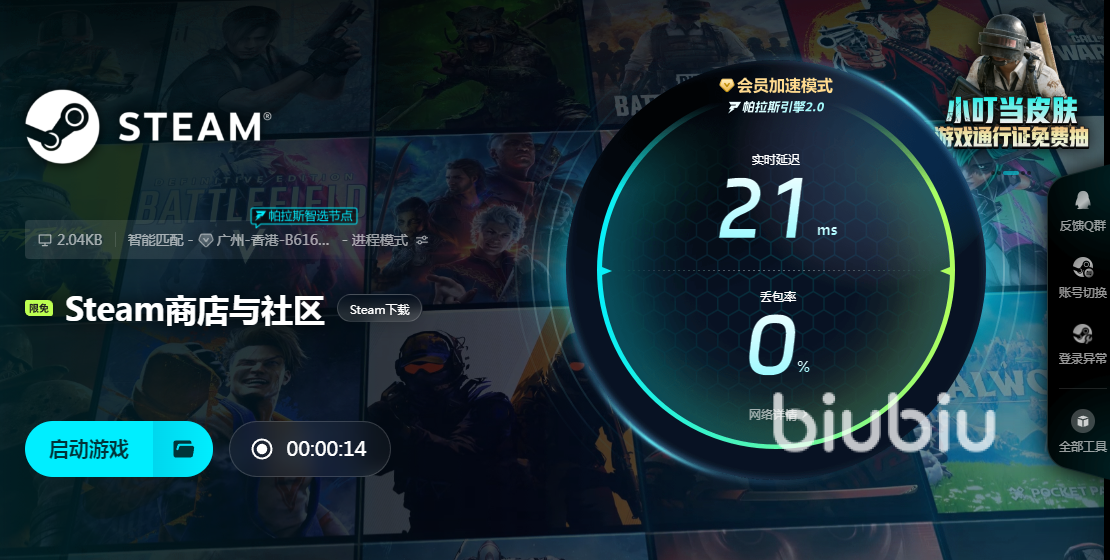 biubiu的好处可太多了,专业的线路加速效果可不是盖的,不仅让大家浏览steam商店的时候更加顺畅,找游戏买游戏整个过程一气呵成,还能提升游戏的下载速度,小伙伴们再也不用等上大半天下载游戏了,加速后电竞级别的网速很快把游戏下载安装好,让大家快点享受快乐。