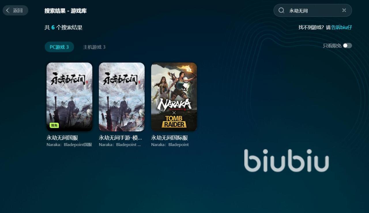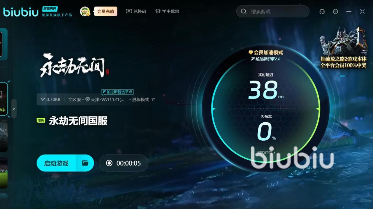 永劫无间上线了端游和手机两个不同的版本,玩家能在不同设备上去进行游玩,为了便于大家使用,biubiu加速器内也为不同版本的游戏,安排了专属的加速入口,使用者只需把游戏名添到搜索框内检索就能找到,接着点自己要用的即可。如果你以前没了解过这个产品,那么不妨注册账号试试,新用户能免费用24个小时,届时你就能知道app的效果了,要是24小时不够用,那么直接输入兑换码【biubiu不卡顿】,就能得到3天的试玩时间,这项福利适用于所有用户,经过一番体验后,要是你感觉这个应用还不错,那么不妨注册成为正式会员,大学生用户还能享受专属的折扣优惠。