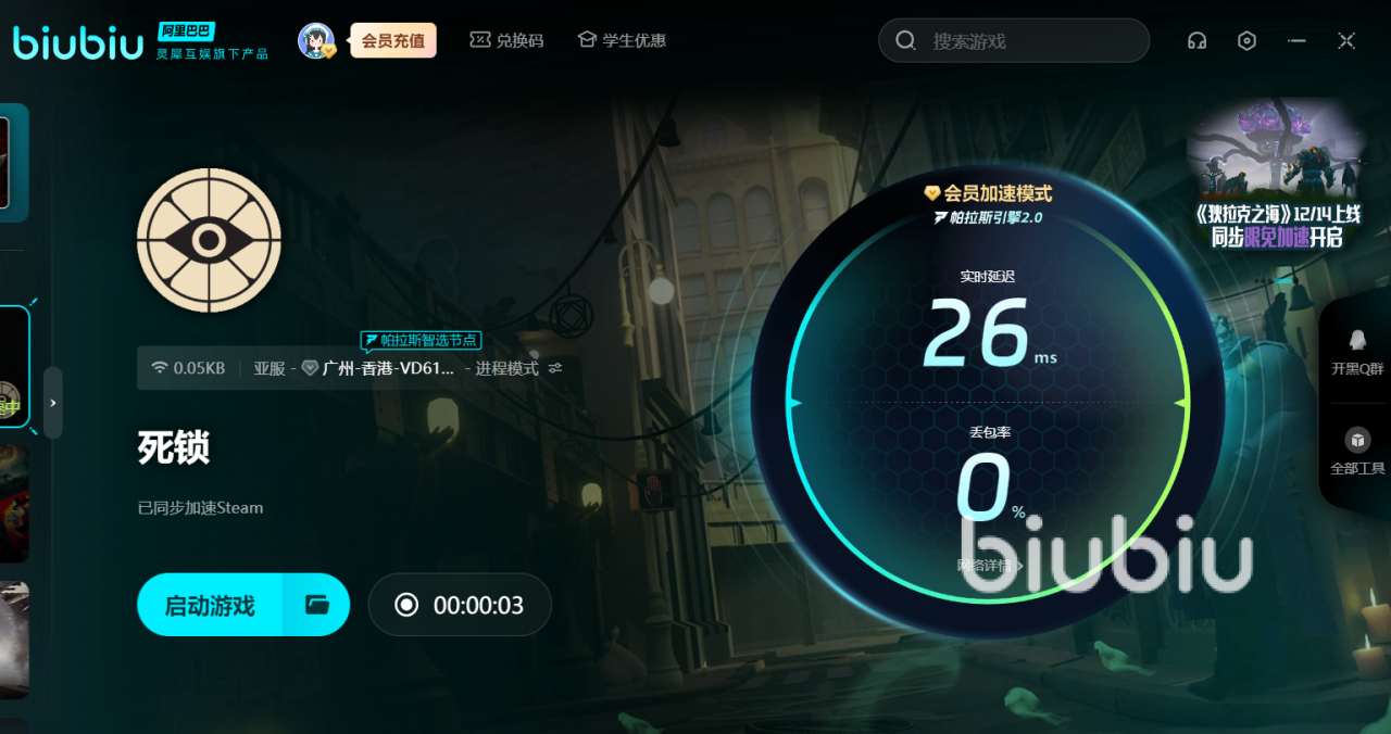 针对过时的硬件配置问题,玩家可以选择升级设备。然而,更多情况下,卡顿和闪退的原因来自网络不稳定,这时,解决方案其实挺简单的。Biubiu可以给你带来优化网络,稳定连接,解决卡顿问题。值得一提的是,软件为新用户提供了相当不错的福利:注册登录后就能获得24小时的免费加速时长,此外,输入【biubiu不卡顿】兑换码,新用户和老用户都可以额外领取72H的免费加速时长。