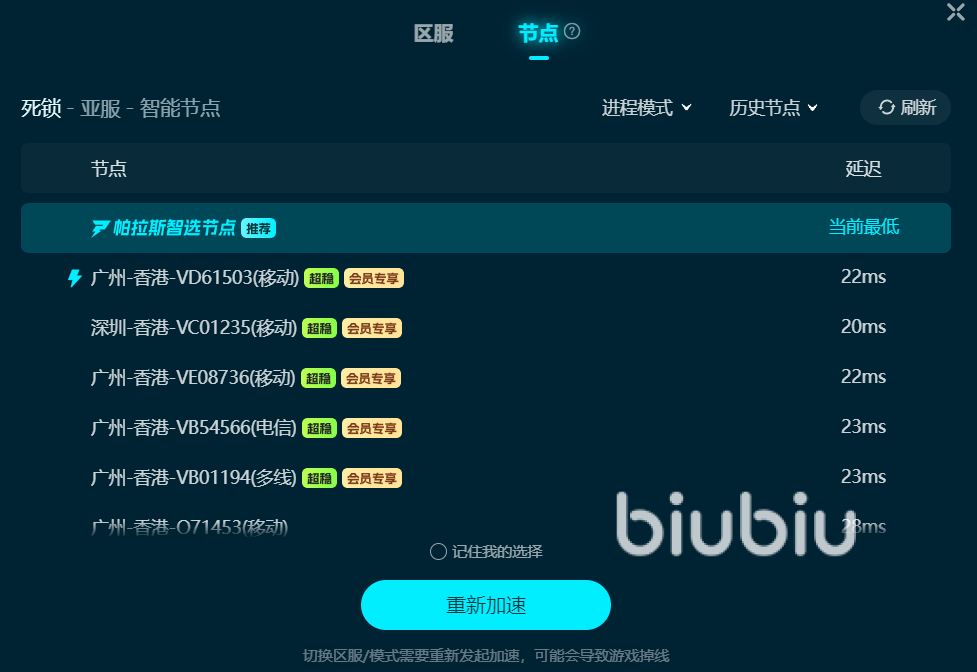 因为它拥有全球部署的高速专网通道,最大程度突破数据传输的物理壁垒,保证加速过程既快速又稳定。在加速器的游戏库中,玩家可以搜索轻松找到《死锁》,启动它的国际服大区后,系统会自动连接到最佳节点,并根据当前效果优先连接最优地延迟的节点,确保连得又稳又快。