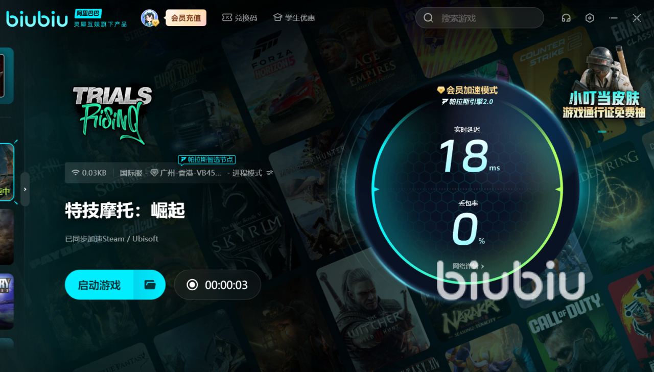 对于“特技摩托崛起卡顿怎么解决”的问题,那就交给biubiu来搞定!biubiu不仅支持成千款不同种类的游戏加速,而且成为正式会员的价格亲民,特别适合预算有限的学生党们,轻松解决网络问题,尽情享受游戏带来的乐趣!