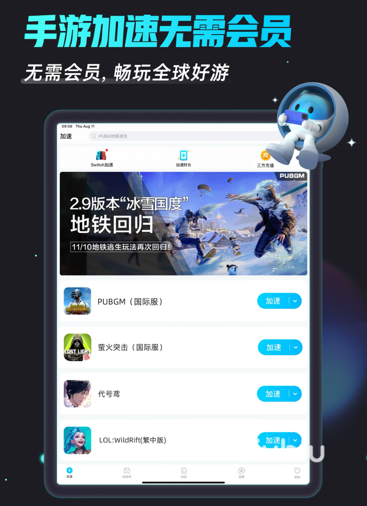 Biubiu的移动端免费,玩家无需开会员,而且不用排队等线路,顺利地在上古的恐龙世界施展自己的才能。平时有多种手游优化需求的玩家,可以选择看视频领时长,即使你是预算不足的大学生,也可以通过这一方式低成本收获不少的乐趣。
