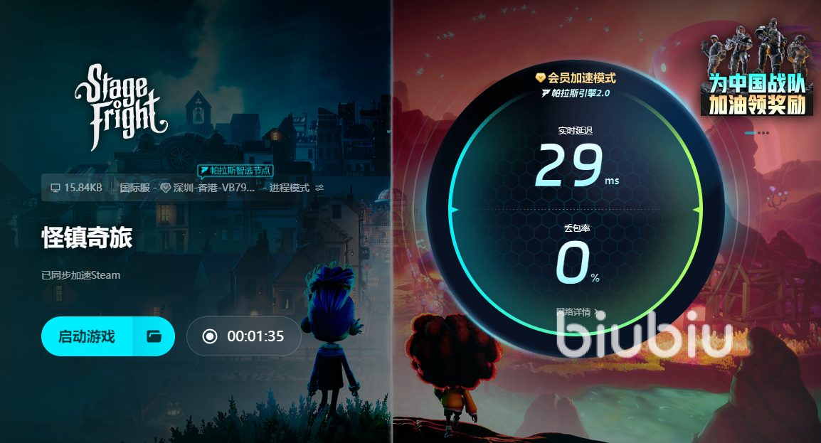 加上关卡当中还有一部分的密室逃脱玩法,当操作跟解谜结合在一起之后,其实更需要我们能够保证是长时间稳定的跟队友配合的,那用biubiu来避免遇到常见的网络问题,肯定是必不可少的。