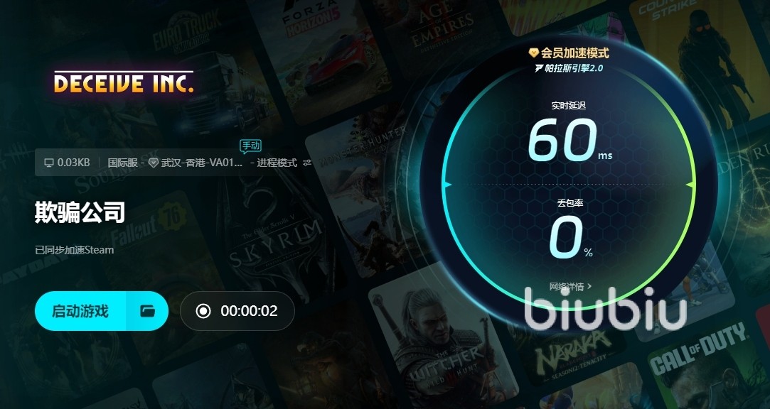 在游戏中,玩家会拥有不同的身份,我们扮演的是一名间谍,可以伪装成任何人,通过利用游戏内的任何小道具来提升实力,也可以压制对手,只有获得最终的重要线索才能取胜。游戏会拥有非常独特的角色形象,而且每一个角色都有特定的武器,我们需要挑选适合自己的参与战斗。它拥有高科技的工具,能让我们进行自由配置,还能实现社交潜行,利用强大的间谍能力来取胜,可以说游戏的玩法是非常精彩的,至于玩家们表示出现闪退的情况,那么基本都是因为网络不够优质所导致的。想要解决,玩家们不妨尝试使用biubiu来处理,它拥有专线级的加速线路,是一个非常优质的加速工具。