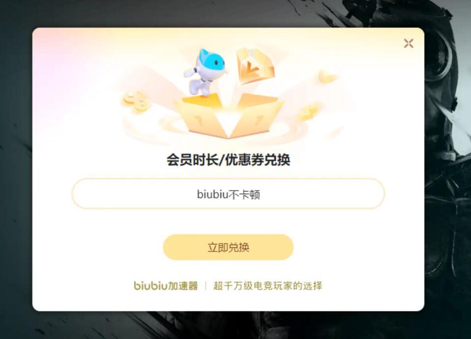 如果你已经是biubiu的会员,那么在上图所示的对话框内,输入兑换码【biubiu不卡顿】,就能得到3天的会员,要是你还用过,那么以新用户身份注册,不仅能用兑换码,还能得到3小时的试玩时长。