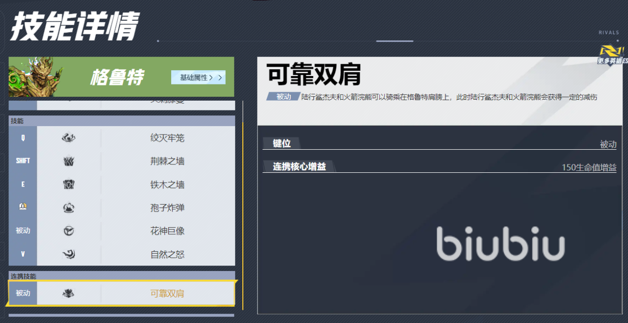 格鲁特:强大的花神巨像族,可以发射荆棘炸弹将敌人拉住并且禁锢住,还可以生成铁木之墙,激活之后就可以给自己还有周边的队友提供额外的生命值,起到一定的辅助能力。遇到陆行鲨杰夫以及火箭浣熊的时候,还可以让它们搭在肩膀上进行攻击。提供控制以及增益之外还能够吸收伤害带着队友打,很称职的坦克。