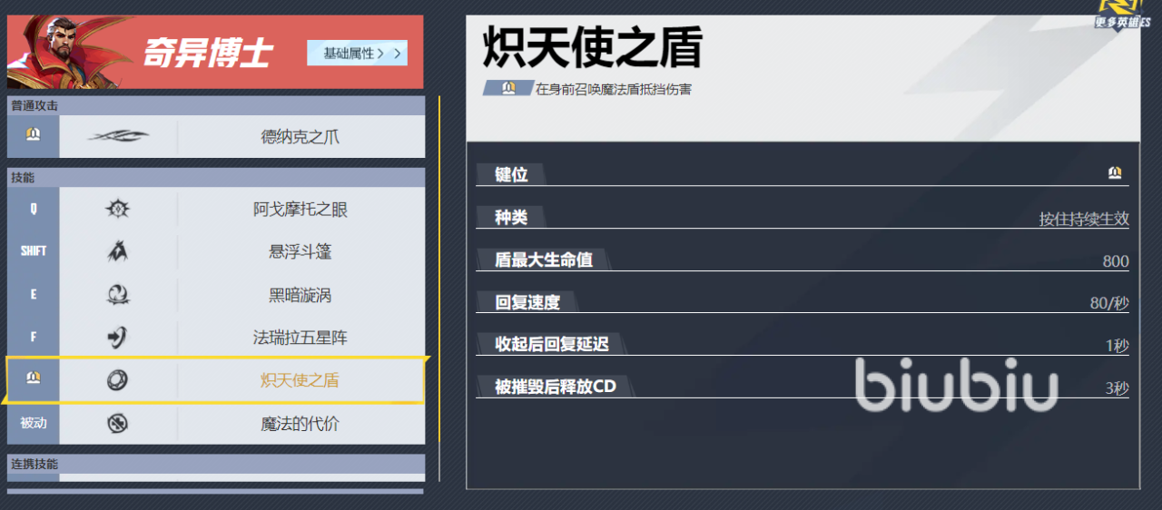 奇异博士:该角色的特点就是机动性比较好,飞行距离比较远,还可以利用法瑞拉五星阵在两点间构建一个能够自由穿梭的法阵,位移能力很强,在战斗的时候还能够用炽天使之盾召唤法盾抵御伤害,可以在战场中灵活走位,吸引敌人注意然后再抵挡掉攻击。