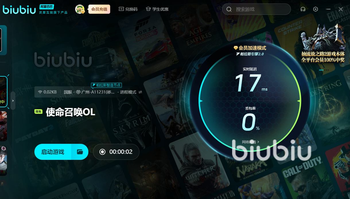 使命召唤OL对一个人的操作技巧要求高,稍微卡顿就会走火,令对方有机会逃走。必须用上biubiu,才能让你弹无虚发,避免别人逃离你的追捕。新用户的话可领取3小时的免费加速,新老用户键入【biubiu不卡顿】,继续额外畅享三天免费加速。要是打算用上顶尖操作时延迟不低,就不能打出惊艳一枪,甚至拖队友的后腿。唯有用上biubiu后,才能形成真正的天外来枪,一枪击中要害。