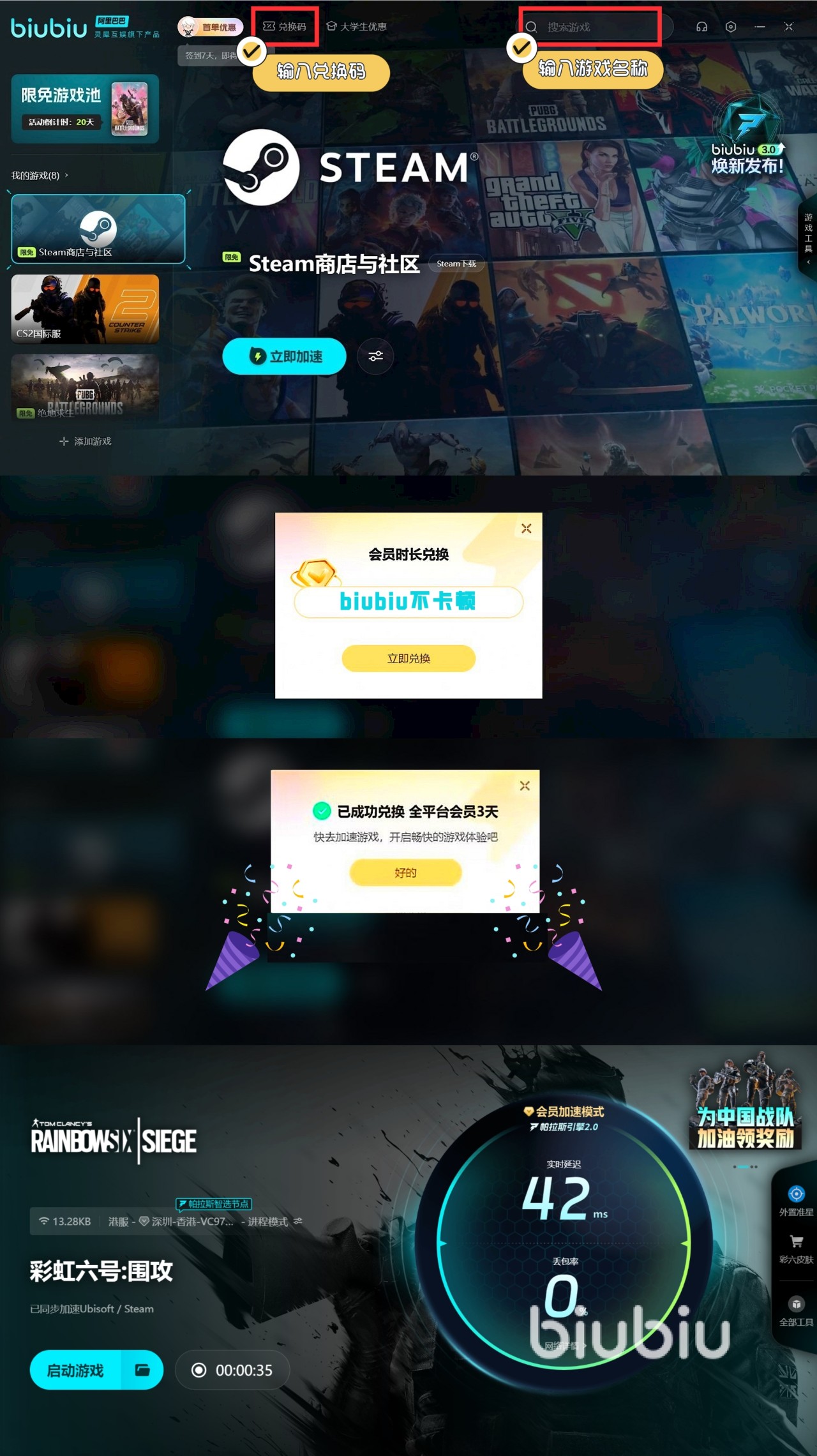 这时候alibi就可以远程对这个敌人进行追击攻击,因为每次攻击投影都会进行标记,如果对面多个人选择攻击投影的,那么多个人的位置都会全部呈现,这时候就可以联合队友选择全面进攻,从而取得优势,部分玩家游玩的时候会明显感觉卡,想使用biubiu加速器进行加速,可以使用biubi加速器,并且新人在注册后便获3小时免费加速,新老用户均可使用兑换码【biubiu不卡顿】可获3天免费的使用权哦!