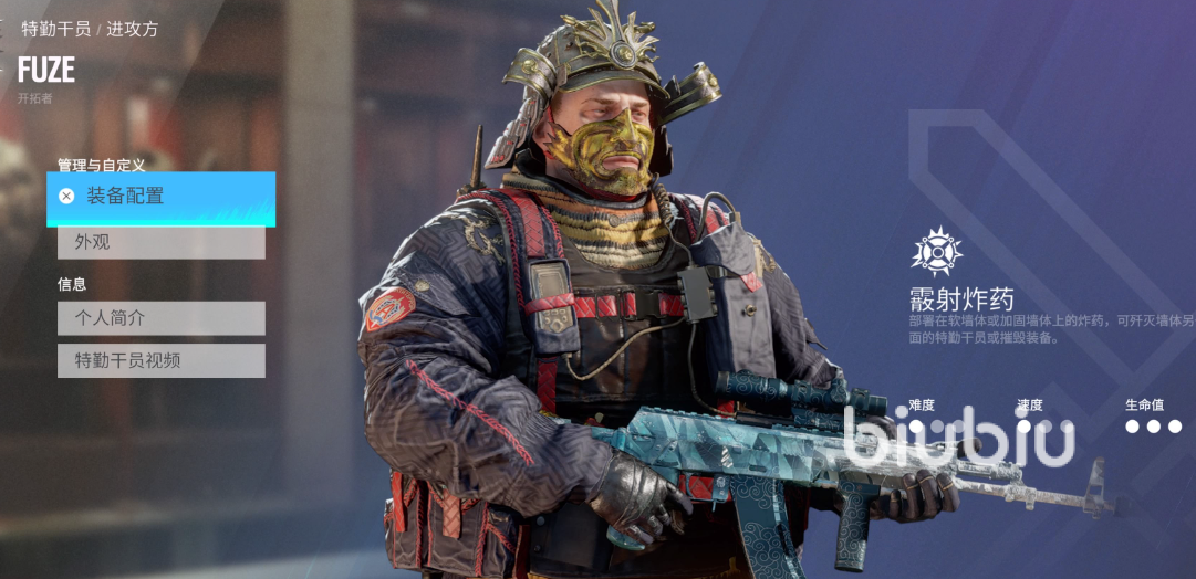 另外一个俄罗斯干员就是fuze,是一个专业的救援人质专家。平常可以用闪射弹药攻击对手,来破坏船体以及木窗,后伤害范围很大,很容易误伤队友,并且声响大。当习惯使用突击步枪以及轻机枪,带有防弹物护盾,适合正面刚,主要的任务就是拯救人质。