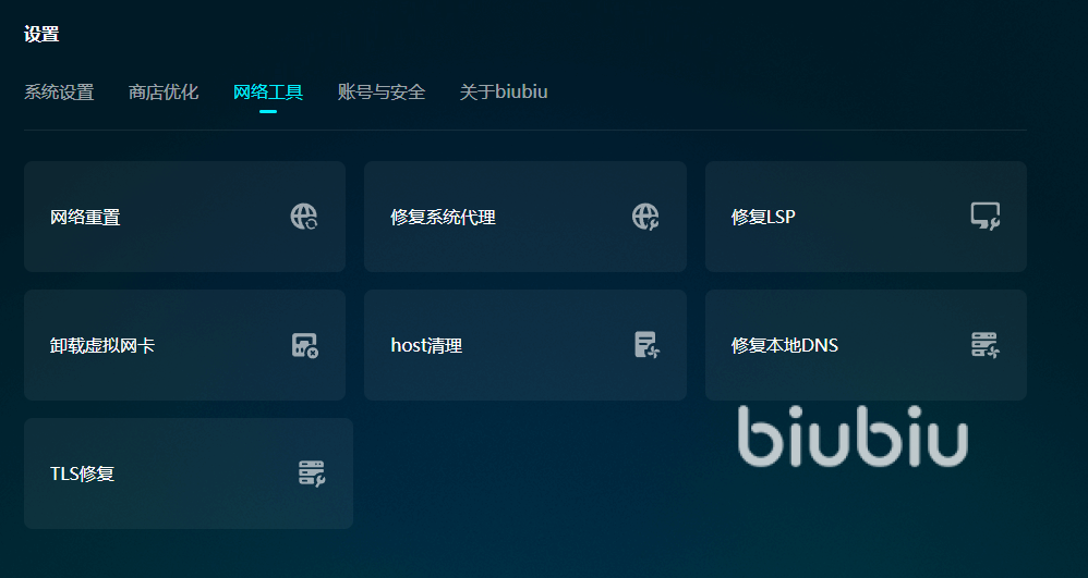偶尔也会出现加速异常或者是登录报错的情况,这时候大家也不用慌张,biubiu工具箱就是专门解决这些故障的。7款工具对应解决的是7个问题大类,修复迅速效果立竿见影。有biubiu在大家玩游戏可以很安心,它不仅让网速更快更稳定,还会帮大家修复好电脑里的各种故障,出了故障再也不用四处求人了。