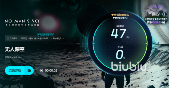 无人深空作为值得探索的高人气游戏作品,支持众多玩家共同参与,想解决无人深空卡死情况也比较简单,通过biubiu直接优化网络即可,可加速的游戏作品相当多,包含2万多款,让你尊享极致体验。