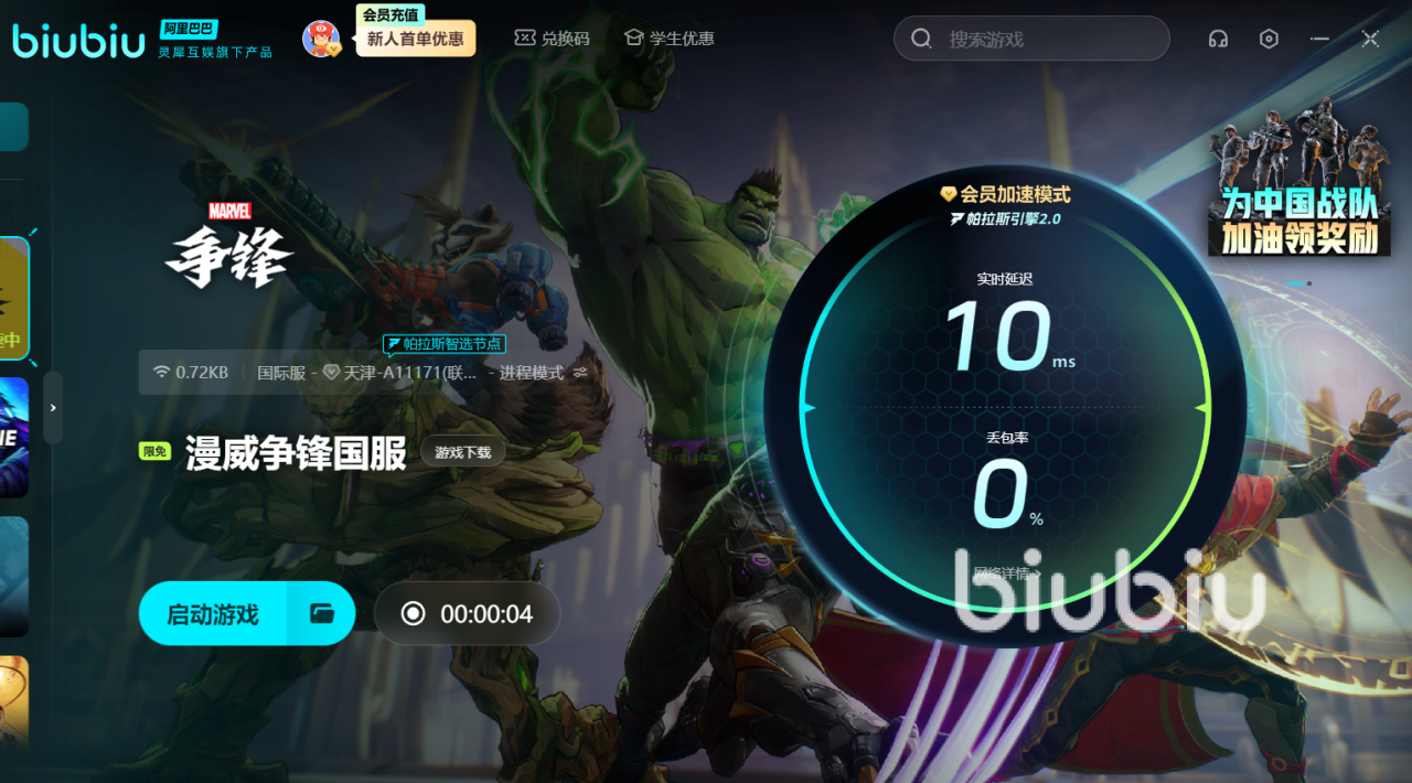接下来,你还可以借助biubiu来进行优化,要知道它最高为下载提速500%,还能处理大部分网络问题。在加速器中找到游戏并点击“一键加速”,就能享受丝滑的操作了。凭借【biubiu不掉线】可拿走3天提速时长,第一次加入的朋友还有3h会员体验,一起有75h时间游玩。