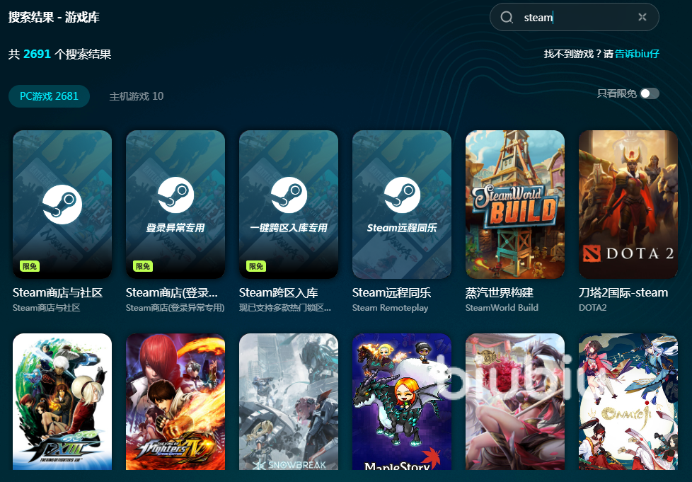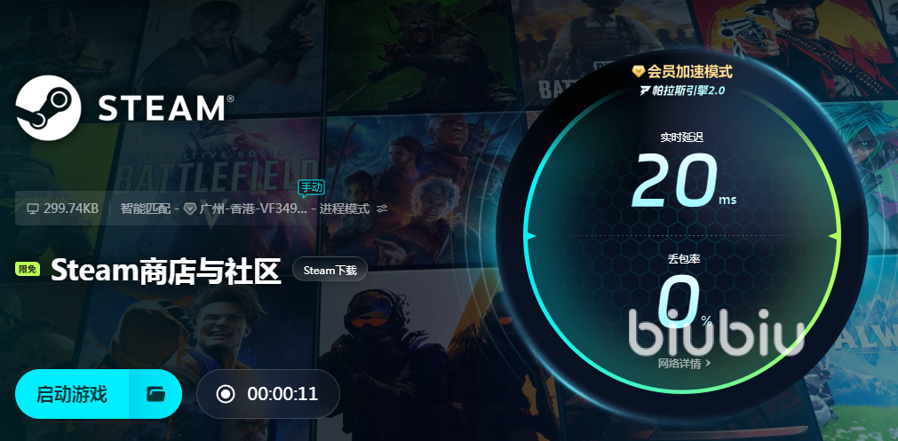 废话不多说,还没用过biubiu的赶紧趁着现在有新用户免费加速3H的活动入坑体验一下,点击上方按钮即可下载软件。它支持加速的游戏非常多,还能同步加速游戏平台、主机游戏。首先打开软件加速steam,玩游戏的时候就会感觉到很通常很顺利,一点都感觉不到有卡顿有延迟。