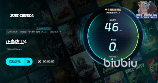 正当防卫4卡顿严重的话会导致玩家心态崩溃,也会让玩家拥有游戏的厌恶感,不妨使用biubiu专业的加速应用来改善,专业电竞级加速工具,所有流程操作全部都采用智能化,无需过多手动操作。