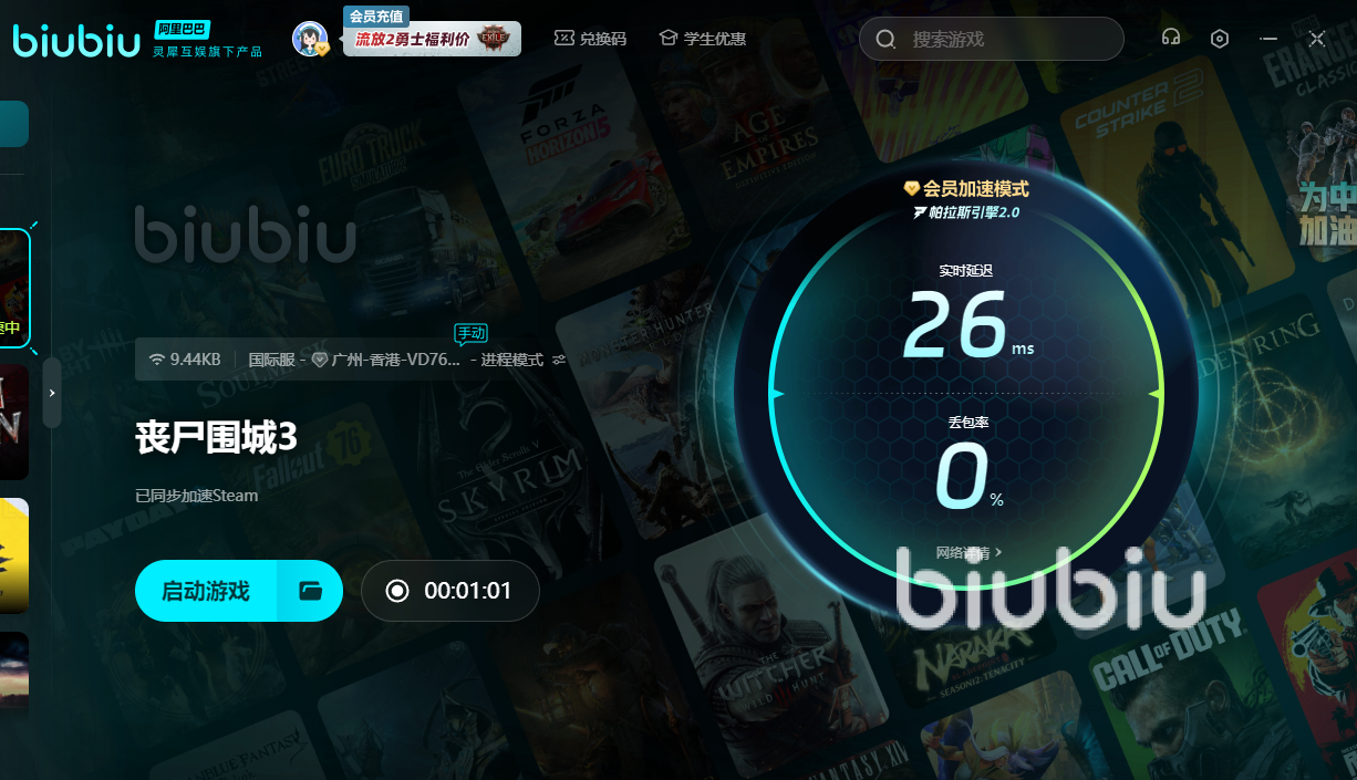 丧尸围城3目前还是海外大作,暂时没有国服上线,所以想进入丧尸围堵的街道。就得启动biubiu,这样才能突破重重围堵,加入抗衡丧尸的任务中。新用户的话,可领取3小时的免费加速;此外,新老用户输入【biubiu不卡顿】,便可额外畅享三天免费加速。不过为了避免被僵尸们提前消灭,又不能出现一丁点的卡顿。采用加速器后,才有能力躲避丧尸们的追击。